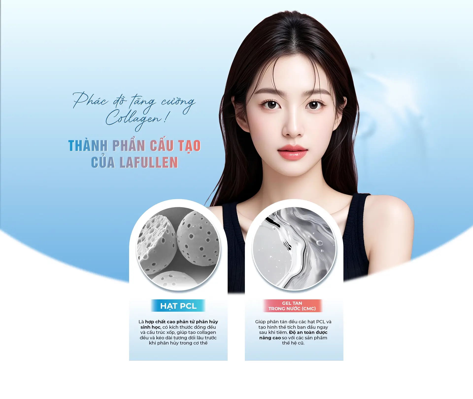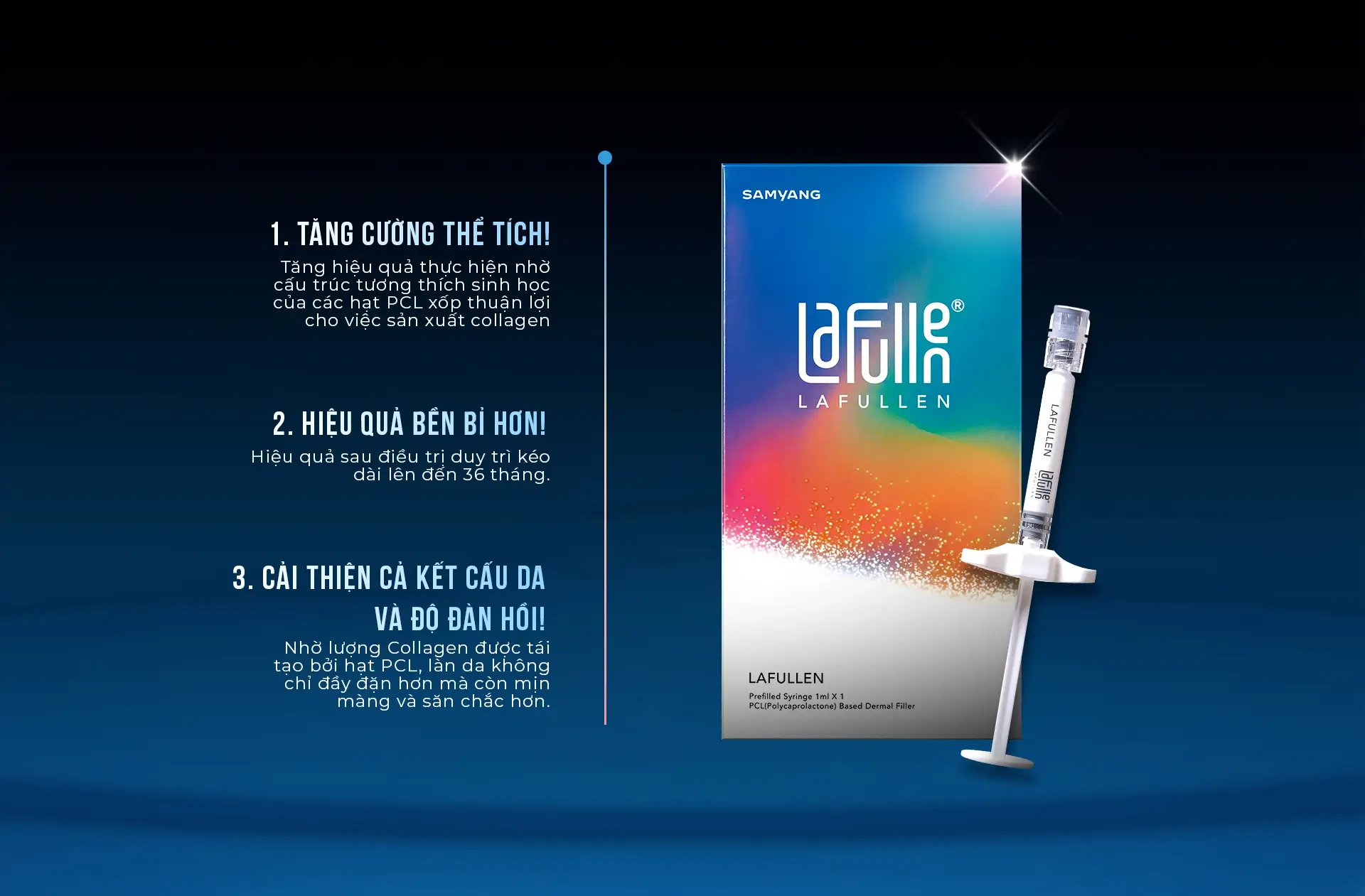 Lafullen là dòng Filler PCL chuyên biệt kích thích tăng sinh Collagen. Với các hạt PCL cấu trúc xốp và kích thước đồng nhất, giúp tối đa hóa việc tạo collagen trong da, từ đó mang lại hiệu quả cải thiện độ đàn hồi, kết cấu da cũng như tăng thể tích.