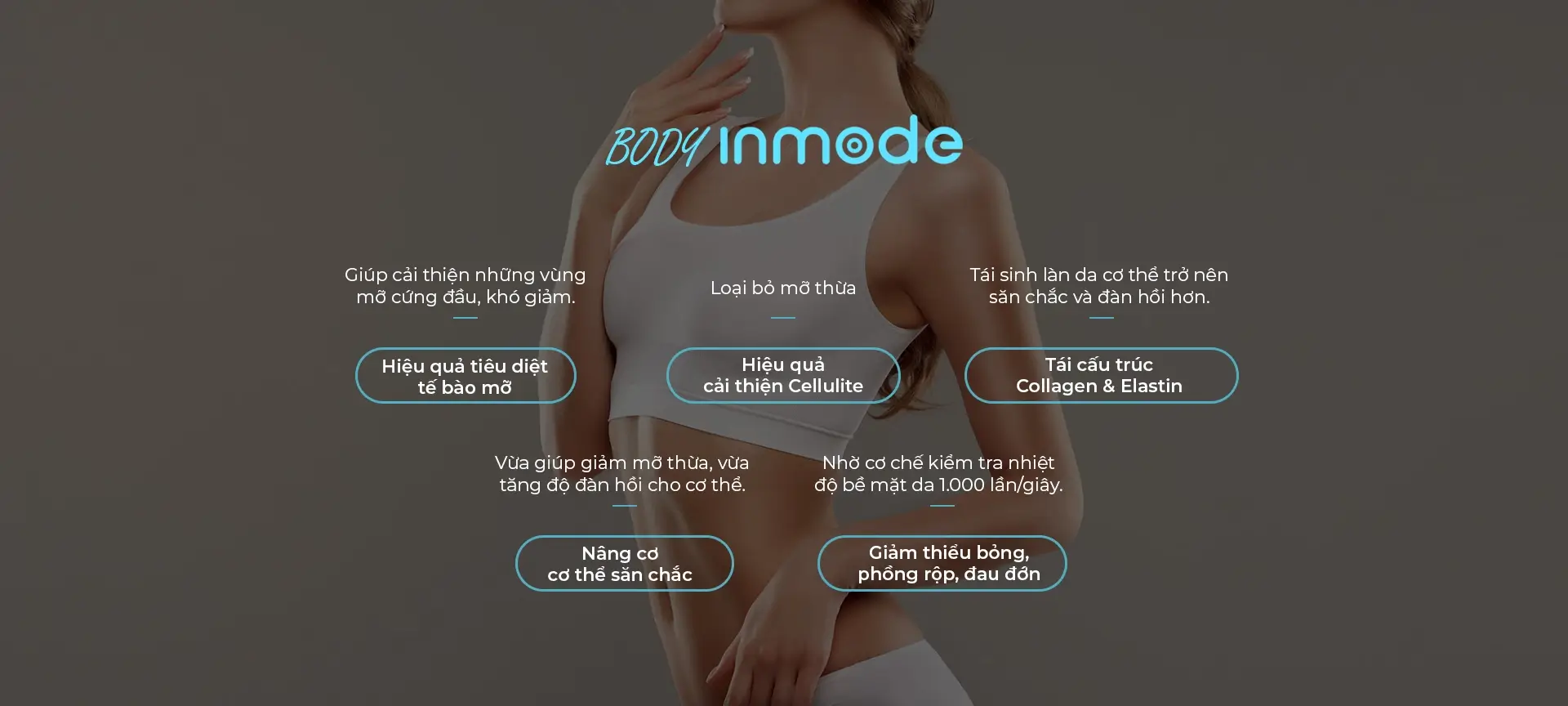 Body Inmode là liệu pháp nâng cơ chống lão hóa, sử dụng năng lượng sóng cao tần (RF) kết hợp với xung điện cao áp (HVP) truyền sâu xuống lớp cân cơ (SMAS). Phương pháp này giúp tiêu diệt các tế bào mỡ thừa, đồng thời kích thích sản sinh Collagen và Elastin ở lớp biểu bì và trung bì.