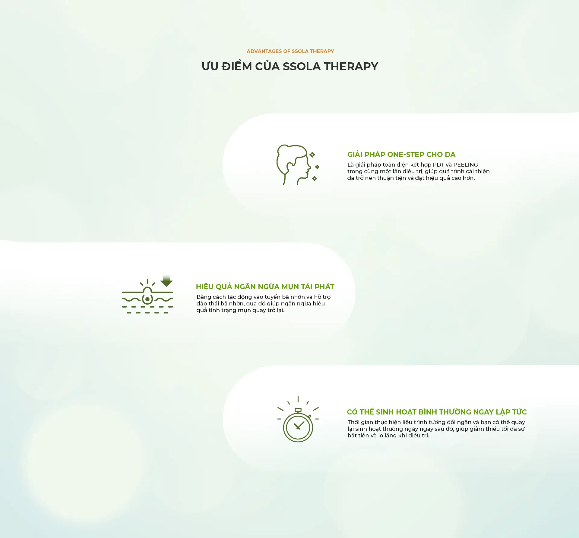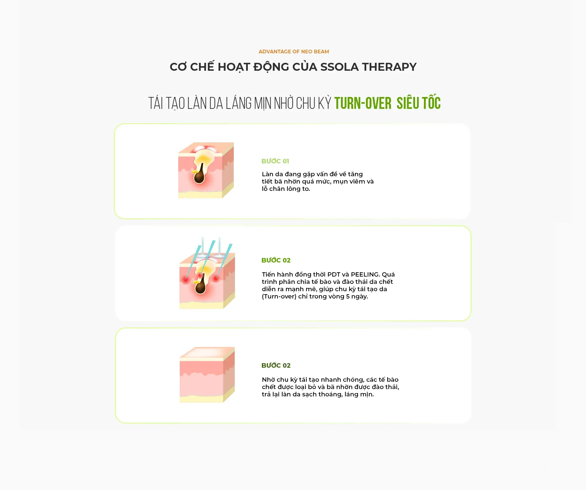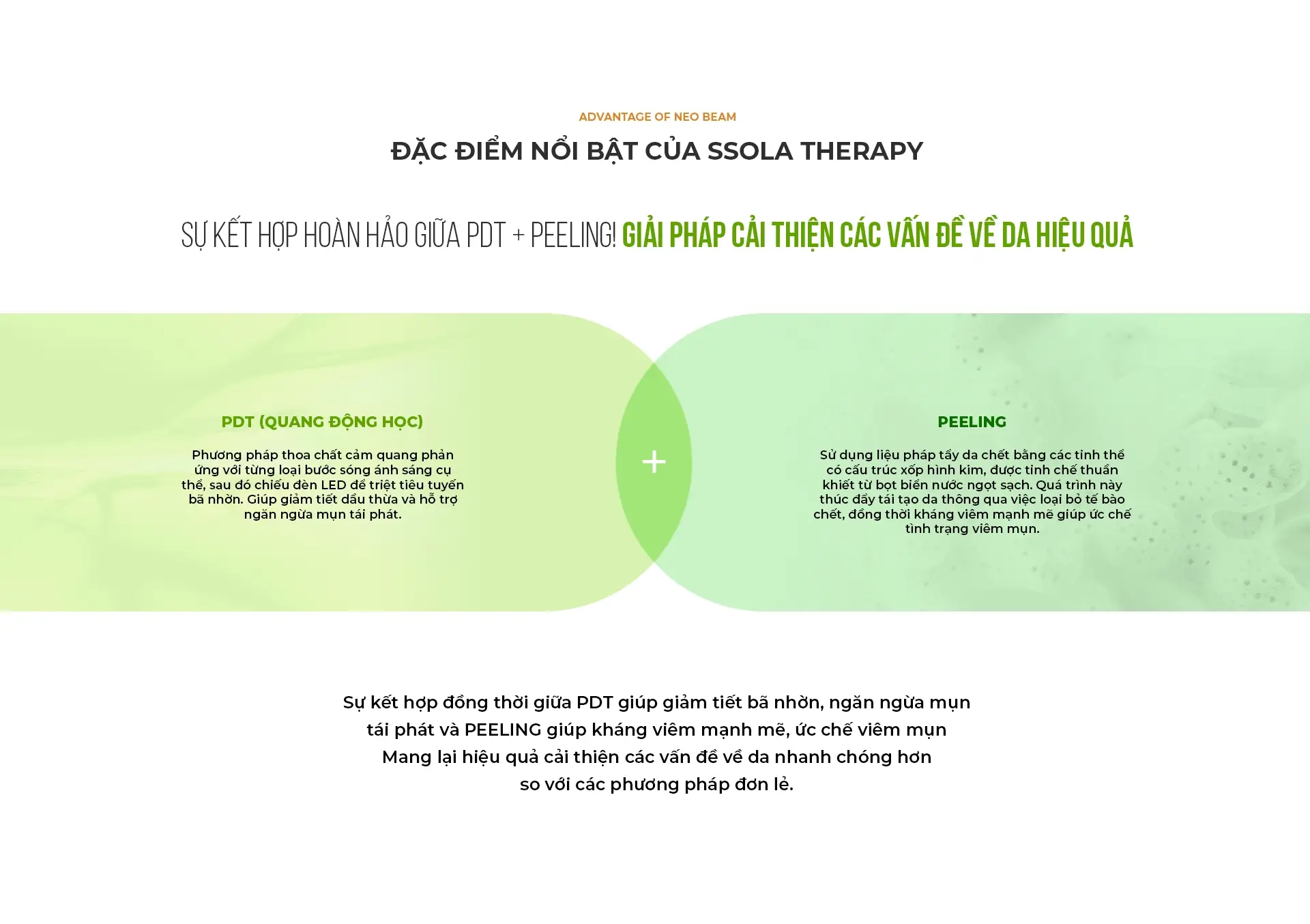 Đây là giải pháp One-step-solution dành cho da mụn/hư tổn, kết hợp giữa Peeling để loại bỏ tế bào chết gây bít tắc lỗ chân lông và PDT để giảm tiết bã nhờn. Phương pháp này giúp xử lý các vấn đề về da nhanh chóng và hiệu quả hơn.